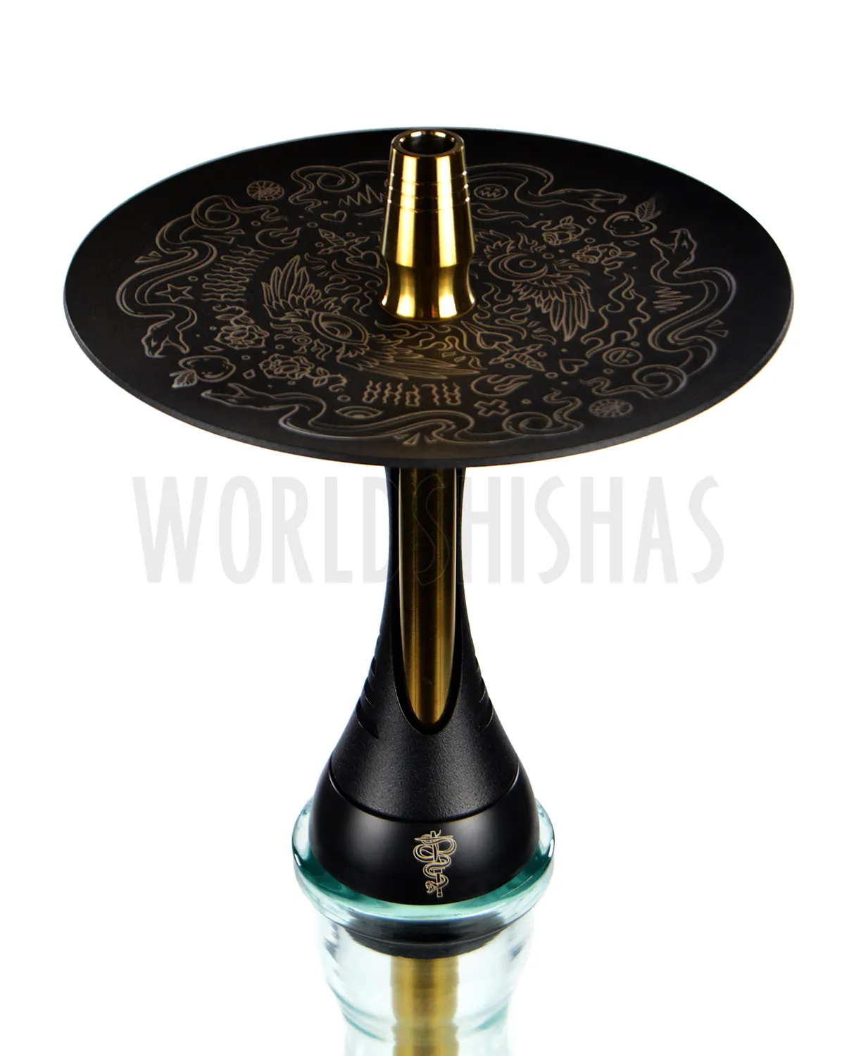 La cachimba Alpha Hookah S es uno de los mejores modelos actualmente del mercado, catalogada así como la mejor cachimba en Rusia del año 2018. Los materiales que utiliza son de alta calidad, empleando el acero inoxidable en tono dorado, con un plato grabado a láser.