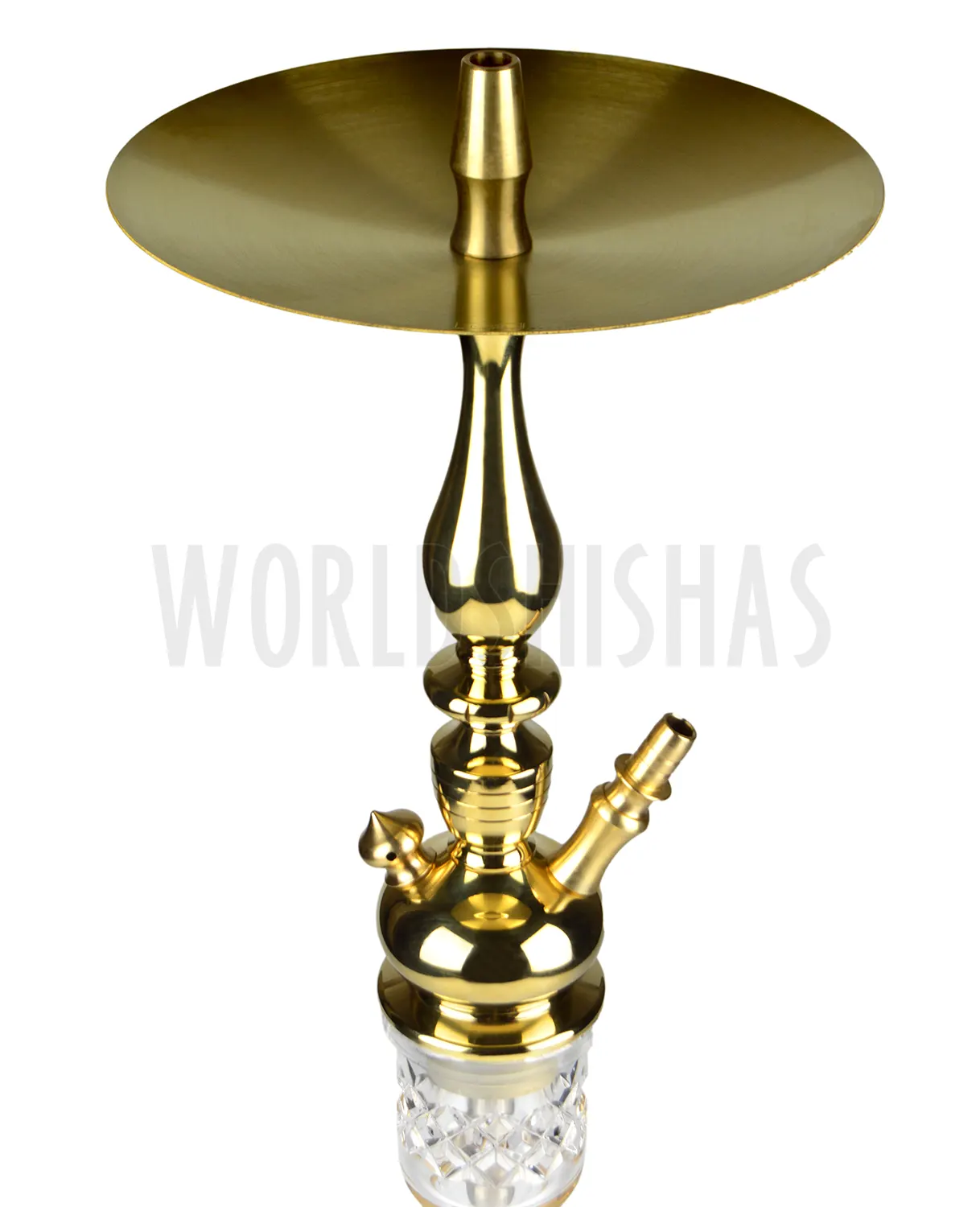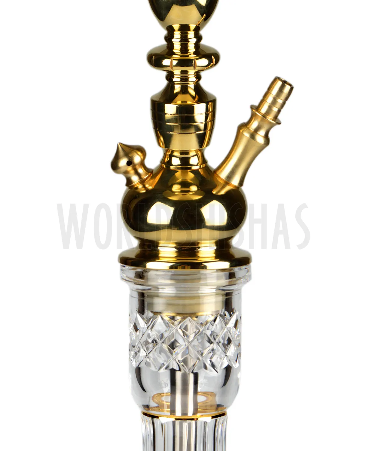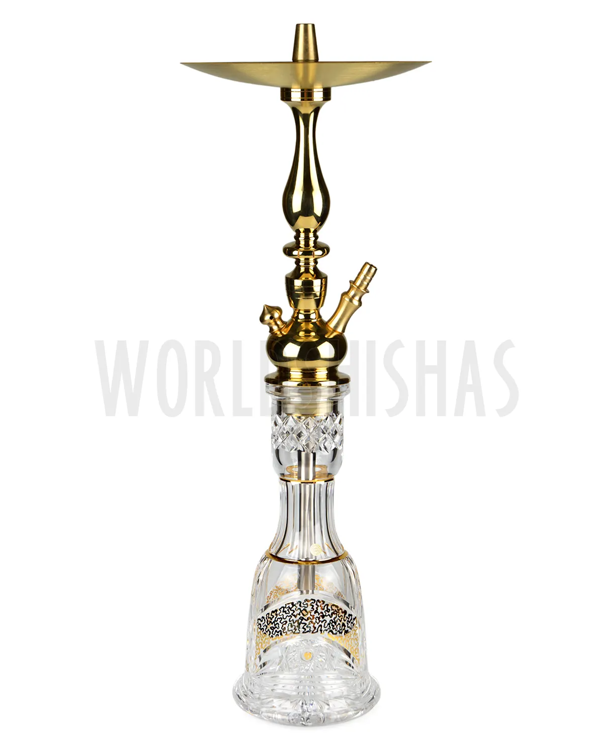 Su base de cristal de bohemia con detalles dorados hace de esta shisha una joya.