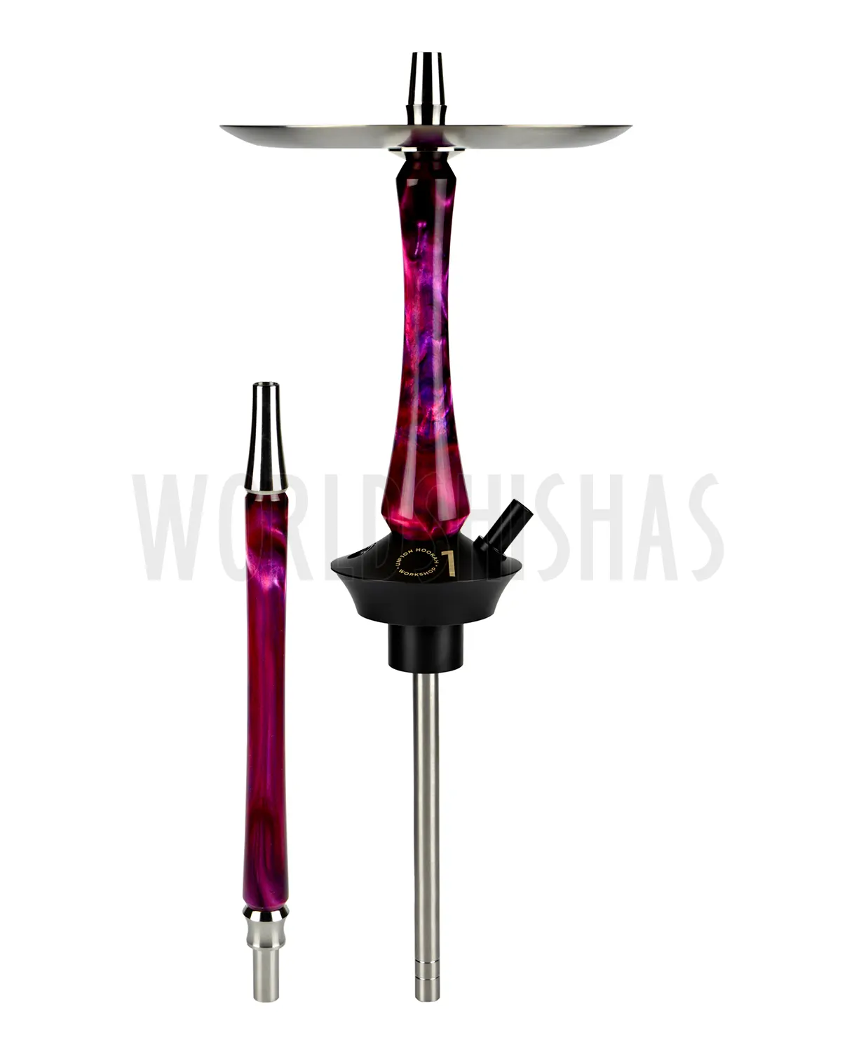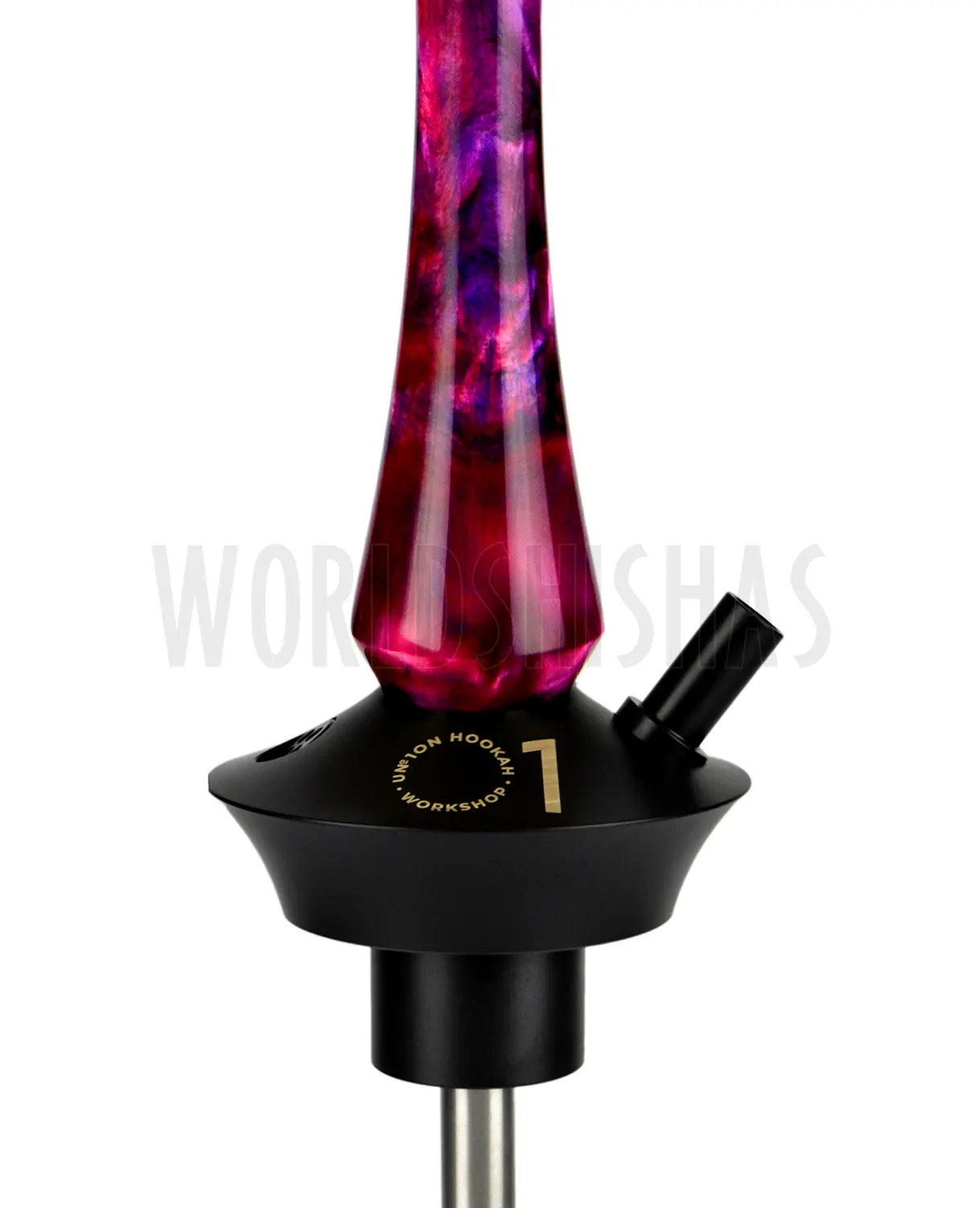 Tiene una atura de 50cm aprox. y, tal y como es habitual en la marca Union Hookah, está fabricada con los mejores materiales del mercado. El acero inoxidable, un material que asegura su durabilidad. El mástil está fabricado totalmente a mano con resina. También incluye una boquilla a combinación con el mástil.