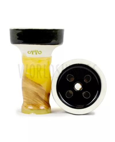 La cazoleta Otto destaca por su revolucionario diseño, que combina diferentes materiales como la resina acrílica, la madera y el barro blanco esmaltado.