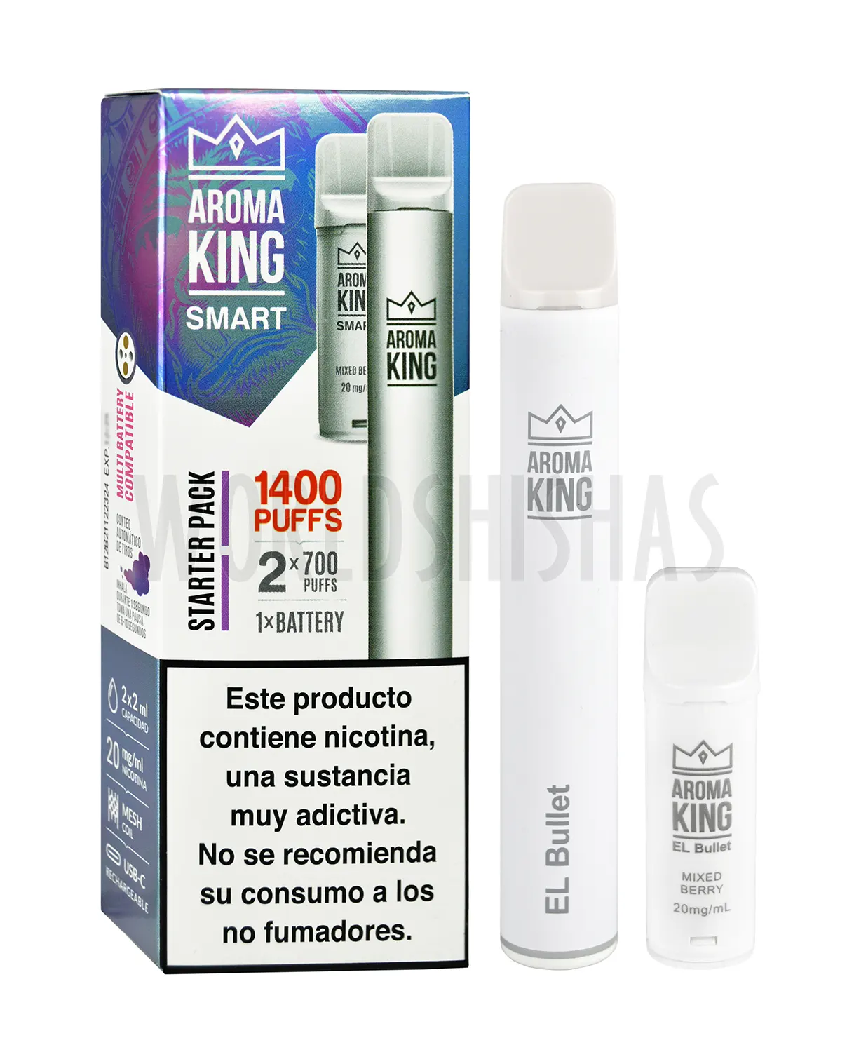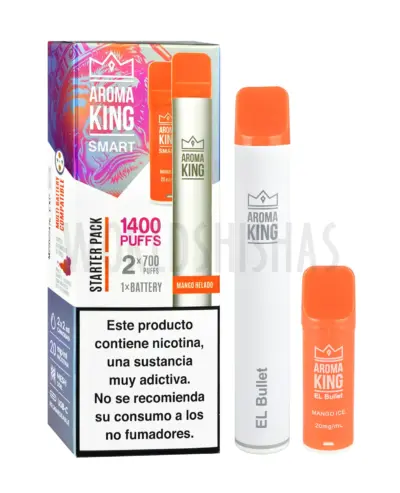 En el Starter Pack se incluye 1 dispositivo Aroma King Smart + 2 cápsulas de líquido. Cada cápsula equivale a 700puff aproximadamente, por lo que el pack de 2 cápsulas son aproximadamente 1400 puffs.